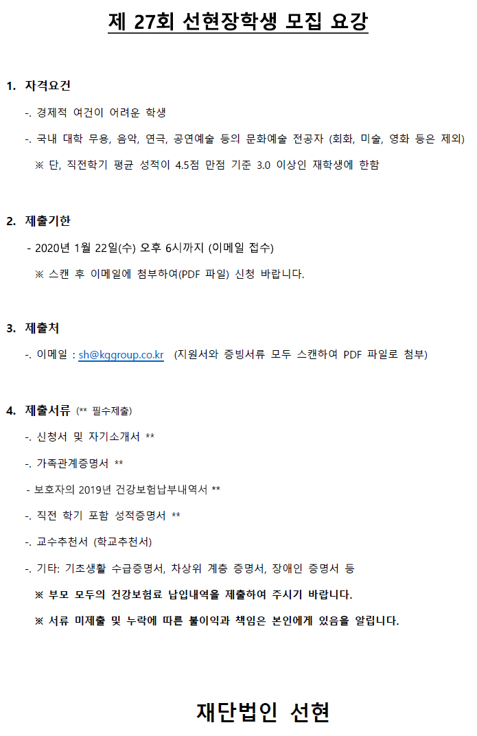 제27회 선현장학생 선발 안내